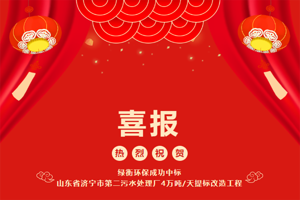 • 熱烈祝賀綠衡環(huán)保成功中標(biāo)山東省濟(jì)寧市第二污水處理廠4萬(wàn)噸/天...