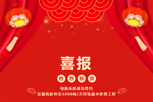 • 熱烈祝賀綠衡環(huán)保成功簽約安徽省蚌埠市3000噸/天印染廢水處...