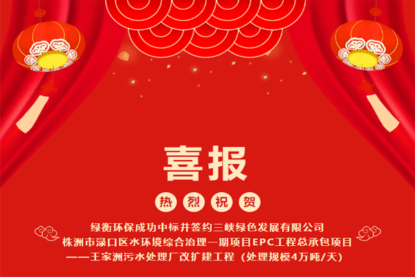 喜報(bào)熱烈祝賀綠衡環(huán)保成功中標(biāo)并簽約三峽綠色發(fā)展有限公司株洲市淥口區(qū)水環(huán)境綜合治理一期項(xiàng)目EPC工程總承包項(xiàng)目——王家洲污水處理廠改擴(kuò)建工程(處理規(guī)模4萬噸/天)...